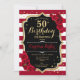 Convite Elegante Black Dourado Rosa vermelha Foto 50º Aniv