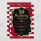 Elegante convite floral feminino de 50 anos com sua foto no final do cartão. Design branco preto-claro com ouro brilhante. Recursos stripes, rosa vermelha, fonte de script e confetti. Perfeito para uma festa de comemoração de na moda adulto. Personalize com seus próprios detalhes. Pode ser personalizado para qualquer idade! Impressos convites Zazzle ou modelo de impressão digital instantânea para download.