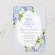Elegante azul hydrangea floral 80 modelo de convite de aniversário. Este convite apresenta flores, rosas e vegetação aquosa de cor hydrangea, com uma estrutura oval moderna sobre fundo azul pálido.
