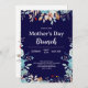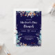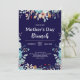 Primavera azul Elegante Flores selvagens e Rosa Dia de as mães Chic Brunch Convite. Bela celebração com a mãe com flores. Personalize este modelo com suas informações. Fundo de cor azul escura na frente e branco com flores no verso. A cor é personalizável.