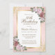 Convite de aniversário floral, cor-de-rosa-pincel e cor-de-rosa-pincel, com cor-de-rosa-pincelada e cor-de-rosa-pincelada-dourada, contendo flores cor-de-rosa-pincelada e verde definindo os detalhes da festa de aniversário. Enche o convite de aniversário floral. Concurso de aniversário de Blush e ouro. Convite de aniversário rosa e dourado. Convite de aniversário rosa. Personalize facilmente esta modelo a qualquer festa de aniversário.