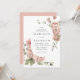 Convites florais elegantes com seus nomes e detalhes de casamento cercados por um quadro oval de rosas de aquarela em tons de rosa-pincel e rosa empoeirado com folhagem verde-escura. Os convites românticos de casamento de rosa são perfeitos para casamentos de primavera e jardim de verão!