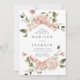 Convites florais elegantes com seus nomes e detalhes de casamento emoldurados por rosas de aquarela em tons de rosa-pincel e rosa poeirento com folhagem verde-escura. Os convites românticos de casamento de rosa são perfeitos para casamentos de primavera e jardim de verão!
