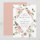Convites florais elegantes com seus nomes e detalhes de casamento cercados por um quadro geométrico de rosas de aquarela em tons de rosa-pincel e rosa empoeirado com folhagem verde-escura. Os convites românticos de casamento de rosa são perfeitos para casamentos de primavera e jardim de verão!