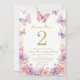 Convite de Aniversário de 2 Anos Elegante Borboleta Menina Aquarela