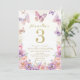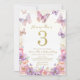 Convite de Aniversário da Elegante Borboleta de 3 Anos em Aquarela