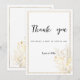 Este lindo casamento Obrigado O convite para design apresenta convites florais encantadores, simples, brancos cônicos e dourados que são perfeitos para qualquer cerimônia elegante e sofisticada. Este requintado design de flores com brilho dourado é ideal para o casal moderno e na moda. Personalize este design com sua mensagem e informações personalizadas. Todas as designs são impressas.