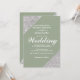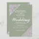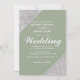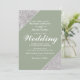 Elegante brilho de prata moderno em verde-sábio com roteiro branco Convite para Casamento