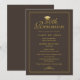 Envie seus colegas de 50 turmas de reunião de classe nosso elegante convite de cartão plano com um fundo marrom e uma tipografia falsa de dourado acentuada com um boné de formatura de ouro. Personalize com todos os seus detalhes de reunião. Elaborado por ©Susan Coffey.