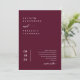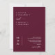 Este convite apresenta uma elegante caligrafia e simples fonte de tipografia sans serif em fundo burgundy com fotografia em forma de arco e código QR. A simplicidade e a design limpa deste convite funciona bem com todos os temas de casamento e definitivamente uma adição excelente ao seu casamento. Basta personalizar os nomes e o texto em alguns passos fáceis e personalizar o cartão de convite com sua foto do casal feliz e substituir o Código QR pelo seu no verso do convite para dar um toque pessoal agradável ao seu convite. Note-se que a elegante caligrafia do texto, "e" na frente e no verso do cartão, assim como a trabalho de arte gráfica de "recepção para seguir" e outros elementos gráficos, não podem ser editados, apagados ou movidos. Eles estão consertados. Se precisar alterar a cor, você pode personalizar o cartão de convite. Você pode personalizar e personalizar o convite para ajustado das suas necessidades de evento de casamento e clicar em personalizar o convite. Você pode personalizar facilmente este convite com seu próprio texto e compartilhá-lo com seus convidados digitalmente — seja através de texto, email ou mídia social. Se preferir, você também tem a opção de enviar uma versão impressa para seus convidados. Ou, você pode fazer ambos — enviar uma versão digital e acompanhar com uma cópia impressa para um toque pessoal!