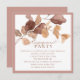 Um eucalipto suave de outono de folhas enquadra-se no topo do seu convite de festa de noivado quadrada. O texto castanho macio se coordena com as folhas de pincel neutro. Este convite faz parte da coleção Elegant Fall Leaves.