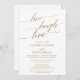 Este cartão elegante com a caligrafia dourada "live laugh love" é perfeito para uma festa pós-casamento no outono. O design neutro apresenta um cartão minimalista decorado com uma tipografia romântica e caprichosa em folha dourada falsa. Os cartões de RSVP são vendidos separadamente.