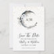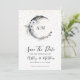 Boho Estrela Crescente Lua Monograma Salve a Data. Celebre uma noite sob as estrelas com este tema de casamento celestial boho caprichoso. Apresentando uma lua crescente no céu da meia-noite em aquarela, estrelas douradas e sutil ênfase boêmia boho, este design cria um visual elegante e divertido. O verso apresenta uma noite estrelada escura em aquarela. A paleta de cores inclui preto, branco, dourado e cinza. Com uma mistura elegante de tipografia cursiva e fonte serifa, este save the date promete uma noite mágica sob um céu celestial. Disponível como convite impresso ou como convite digital para download que você pode enviar por e-mail ou mandar imprimir localmente! Disponível como convite impresso ou como convite digital para download que você pode enviar por e-mail ou mandar imprimir localmente!