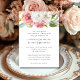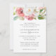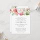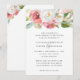 Caracteriza um design floral de jardim em aquarela elegante em tons de rosa, rosa e branco com folhagens e sotaques em turquesa. O verso do convite é emoldurado em florais de jardim correspondentes. Design©Rosalind Moore, Cherry Lane Designs.