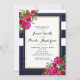 Convite Elegante Casamento Moderno Floral Azul e Dourado O