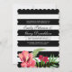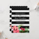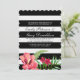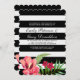 Elegantes listras pretas e brancas e flores exóticas vermelhas e rosadas. Modelo de convite de casamento personalizável
