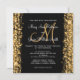 Elegante design de "Salve A Data" de casamento com romântico Brilho de Festa Dourado em fundo preto, e nomes personalizados, texto de data e monograma decorativo. Impressione sua família e amigos com este design moderno e sofisticado. Totalmente personalizável! Fácil de usar e fácil de personalizar. Compre Hoje!