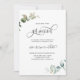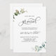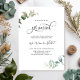 Recepção/convite de festas elopedista Elegante "Casámo-nos" com delicada cor d'água, detalhes verdes Eucalyptus e belos elementos caligráficos manuscritos. Opção para adicionar uma fotografia atrás ou deixá-la em preto. Parte de nossa coleção "Casamento Eucalyptus Mínimo e Gracioso" com o conjunto de coordenadores de cheios e itens de dia de evento disponíveis.