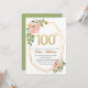 Elegante Convite Floral de Aquarela com Brilho para Celebração de 100 Anos de Aniversário