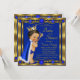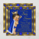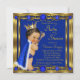 Fornos de chá de bebê com príncipe azul e ouro, com príncipe bebê fofo, num lindo fundo azul real e joia dourada. Esses elegantes convites para chuveiros roleais, azuis e dourados príncipe são facilmente personalizados para seu evento simplesmente adicionando seus detalhes.