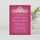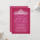 Elegante design de convite de casamento com um candelabro prateado muito detalhado em fundo rosa. Esta design vem em vários produtos de papelaria para fazer um tema bonito para toda a sua papelaria de casamento.
