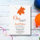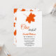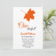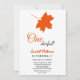 Este elegante convite de aniversário de outono é perfeito para um aniversário de outono moderno. O simples design apresenta folhas vermelhas de queda com elegante tipografia negra e laranja em fundo branco.