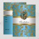 Convite Elegante Chique Dourado Verde-água Azul Floral damasco para Qualquer Ocasião Convites de festa de aniversário