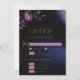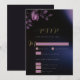 Um rosa e alguns ramos de folhas de eucalipto, desenhados à mão a lápis de cor e camadas com tons de roxo empoeirado e escuro, tornam-se um cartão de RSVP de casamento moderno, sofisticado, elegante e ainda chique. O fundo preto e azul escuro com toques de roxo e luzes ilumina o céu da meia-noite. A caligrafia elegante, na cor dourada, torna este convite preto e roxo ainda mais elegante.