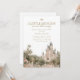 Dê as boas-vindas à sua pequena princesa com este convite de chuveiro de bebê castelo elegante com um castelo de conto de fadas sonhador e flores de jardim românticas. As cores pastéis suaves e o design atemporal criam um lindo tema de celebração real para uma menina.