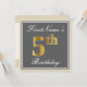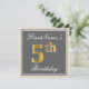 Convite Elegante, Cinza, Faux Dourada 5 Birthday; Nome Per