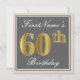 Convite Elegante, Cinza, Faux Dourado 60º Aniversário + No