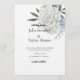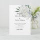 Um convite refinado e atemporal com uma grande rosa branca como ponto focal impressionante.