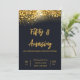 Convite Elegante Confetti Dourado a Preto | 50.o aniversár