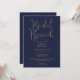 Este convite de café da manhã de noiva com escrita em azul marinho e dourado pode ser personalizado com todas as informações do seu evento especial. Criado por Thisisnotme©