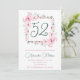Convite Elegante Cor Floral Rosa 52.o aniversário