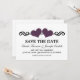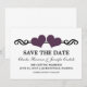 Anúncio doce e caprichoso Elegante Corações Salve a Data com uma borda de redemoinho adornada com um par de corações roxos. Este convite moderno para salvar a data é a escolha perfeita para anunciar o seu casamento chique e elegante. Fácil de personalizar, basta adicionar os detalhes do seu casamento nos campos de texto fornecidos. Clique em "Personalizar" para encontrar opções adicionais de personalização.