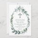 Este moderno convite batismo apresenta uma elegante camada aquosa de folhas verdes sagistas e flores de cinza prateada em torno de uma cruz verde sagenta. Você pode mudar a cor no verso. CORRESPONDENDO a itens na nossa loja.