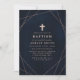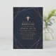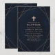 Convite Elegante Cruz Geométrica em Naval e Dourado Rosa p