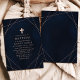 Celebre o batismo do seu bebê com este convite elegante com um fundo azul-marinho elegante e linhas geométricas em rose gold. O design minimalista é realçado por uma cruz sutil, criando um visual sofisticado e moderno. Perfeito para uma cerimônia elegante e memorável, este convite adiciona um toque de elegância e requinte ao seu evento especial. Personalize com os detalhes do seu evento para criar um anúncio único e pessoal.