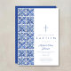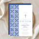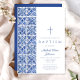 Elegante Cruz Religiosa Azulejos Azuis Convite para Batismo