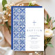 Convite Elegante Cruz Religiosa Azulejos Azuis Batismo
