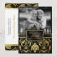 Convites elegantes de damasco metálico preto e dourado para o 50º aniversário de casamento. Adicione sua própria foto.