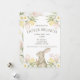 Convide amigos e familiares para uma celebração de Páscoa calorosa e acolhedora com este elegante convite de Brunch de Páscoa. Com um charmoso coelho em aquarela cercado por tulipas rosa pastel, narcisos amarelos e flores de primavera, este design é atemporal, suave e perfeito para a estação.
