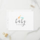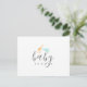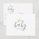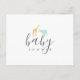 Cartão-postal de convite de chá de bebê com um design lindo, apresentando uma girafa em laranja e um elefante em azul em aquarela. Utiliza tipografia moderna e em itálico. Adicione sua mensagem pessoal no verso. É possível personalizar o estilo e a cor da tipografia. Informe-se se precisar de ajuda ou tiver alguma solicitação especial.