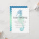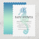 Convite de chá de bebê do cavalo-marinho com matiz azul-esverdeado. O lado de trás do convite apresenta uma imagem completa de matiz azul-esverdeado. Utiliza-se tipografia moderna. Envie-me uma mensagem se precisar de ajuda ou tiver solicitações especiais.