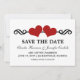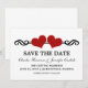 Anúncio doce e caprichoso de Elegant Hearts Save the Date com uma borda de redemoinho adornada com um par de corações vermelhos escuros. Este convite moderno para salvar a data é a escolha perfeita para anunciar seu casamento chique e elegante. Fácil de personalizar, basta adicionar os detalhes do seu casamento nos campos de texto fornecidos. Clique em "Personalizar" para encontrar opções adicionais de personalização.
