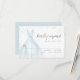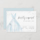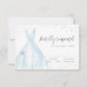 Cartões de RSVP de Quinceanera elegantes apresentam um vestido azul claro de aquarela com detalhes de brilho falso de prata, ótimo para festa de 15 anos.