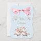 Uma fita elegante que reflete os tempos de regência faz parte desta festa de chá e design de Chá de panela rosa. Azul macio com rosas cor-de-rosa numa matiz pastel. Vintage e elegante design de chá de casamento personalizado. Altere facilmente as informações para o seu próprio design personalizado. Elegante design formal.
