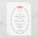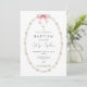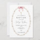 Bonitos convites para batismos com pérolas delicadas e arco rosa. Sacudir nosso convite para ver uma coordenação de volta para um toque especial extra. Visite nosso compro para ver toda nossa coleção religiosa.