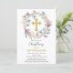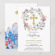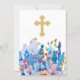 © 2023 Socialite Designs & LICENCORS. Belo batismo ou convite batismo com uma cruz de ouro, um quadro de ouro e um quadro floral. Um convite maravilhoso para convidar a família e os amigos para comparecerem ao evento e se reunirem depois.